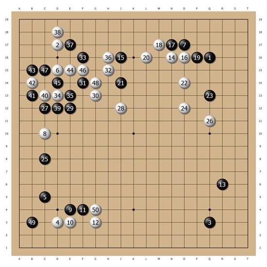 不外实战金志锡走了白44,造成另一种调遣,黑棋左边太厚,比拟容易掌捏。