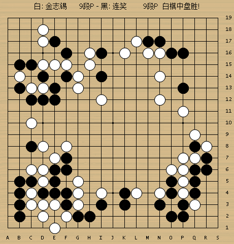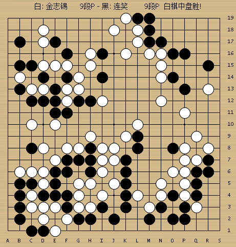 背面的收束金志锡愈战愈勇,黑棋不管奈何贴不出目来。